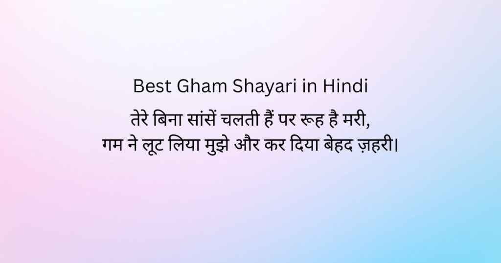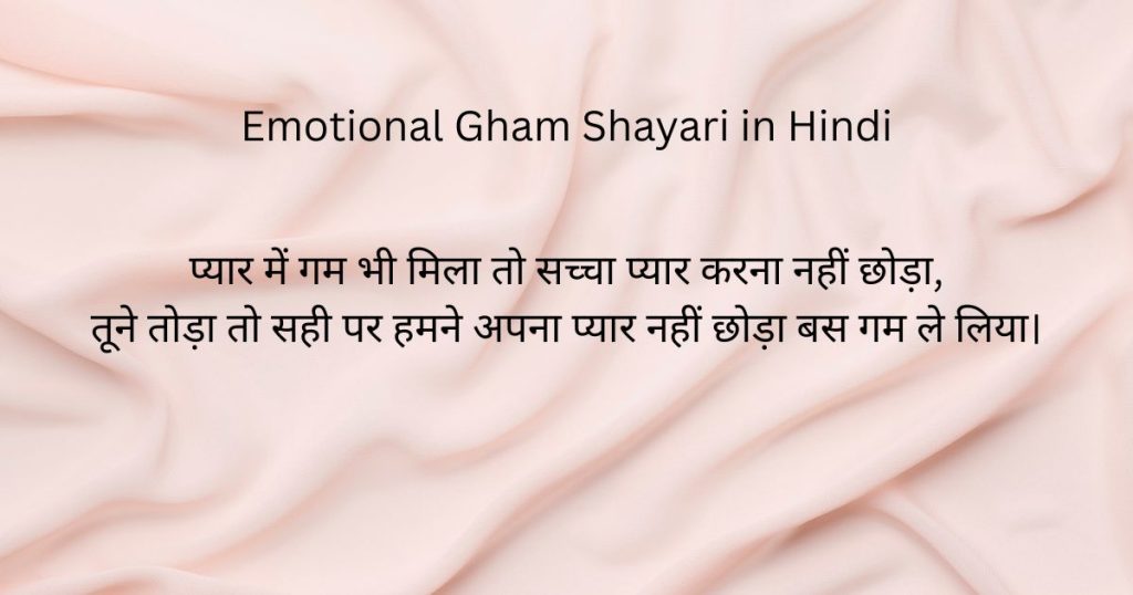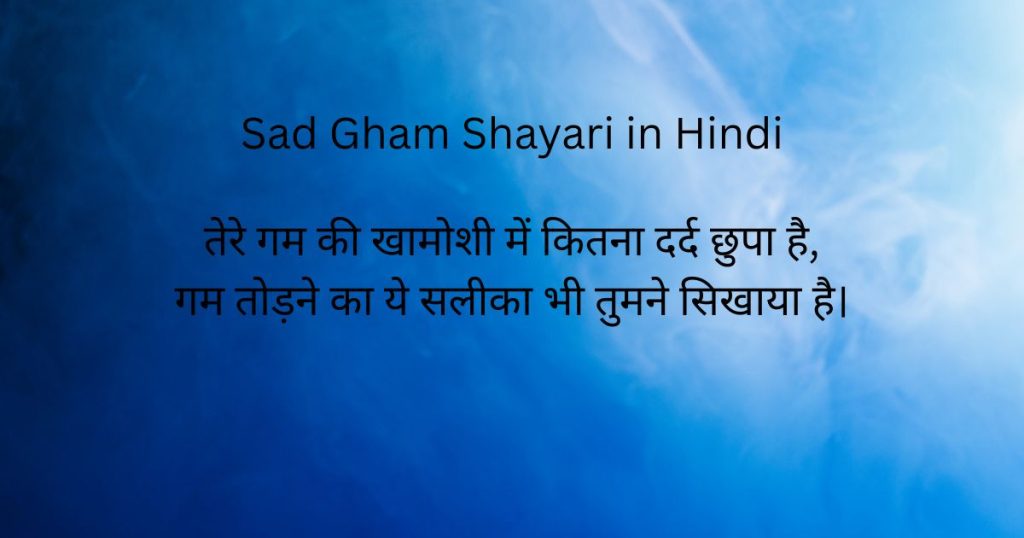 Gham Shayari in Hindi दर्द और उदासी को शब्द देने का सबसे सच्चा और करीबी तरीका है। इस article में हमने आपके लिए best, heart touching, sad, two line, girlfriend, boyfriend और emotional gham shayari सहित 175 से अधिक बेहतरीन शायरियाँ तैयार की हैं। गम जिंदगी का एक ऐसा हिस्सा है जिससे हर कोई गुजरता है लेकिन हर कोई उसे बयान नहीं कर पाता। ये shayari आपके उस चुप दर्द की आवाज़ बनेंगी। चाहे आप किसी के जाने का गम हो, प्यार में धोखा हो, या बस अकेलेपन का एहसास हो, ये शायरियाँ आपके दिल की हर बात कह देंगी। उम्मीद है कि ये Gham Shayari in Hindi आपको आपके गम को समझने और उसे व्यक्त करने में मदद करेगी। याद रखिए, हर गम के बाद एक नई सुबह जरूर आती है।