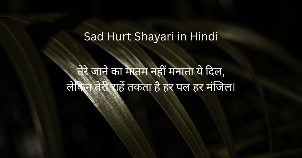 Hurt Shayari in Hindi उन सभी लोगों के लिए एक आवाज़ है जो अपने दर्द को शब्द देना चाहते हैं। जब दिल टूटता है तो अक्सर हम अपने जज्बात बयां नहीं कर पाते और यह शायरी उसी चुप दर्द को बोलने का मौका देती है। इस article में हमने आपके लिए best, heart touching, sad, two line, girlfriend, boyfriend और emotional hurt shayari सहित 175 से अधिक बेहतरीन शायरियाँ तैयार की हैं। चाहे आप किसी के द्वारा दिए गए धोखे से टूटे हों, या किसी रिश्ते के खत्म होने का गम हो, ये shayari आपके दिल की हर बात कह देगी। दर्द अकेले सहना मुश्किल होता है लेकिन जब आप अपने दर्द को किसी के साथ share करते हैं या फिर इन शायरियों के जरिए उसे बाहर निकालते हैं तो थोड़ी राहत जरूर मिलती है। उम्मीद है कि ये Hurt Shayari in Hindi आपको आपके दर्द को समझने और उसे व्यक्त करने में मदद करेगी। याद रखिए, हर दर्द के बाद नई सुबह जरूर आती है।